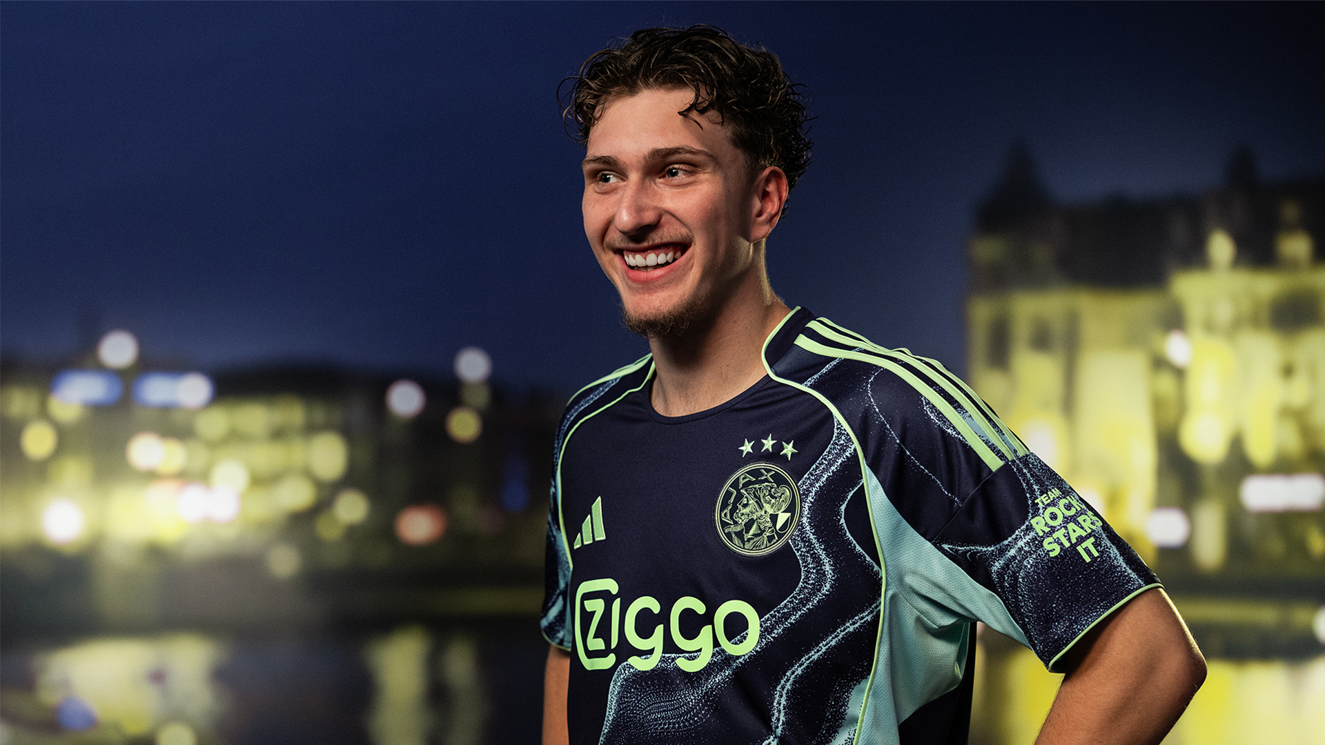 The theme of water was used as the basis of the blue outfit, as a symbolic tribute to the water -rich Amsterdam and the famous youth education. The latter in response to the question of how Ajax succeeds in constantly developing so much talent, where it is sometimes jokingly said that it is ‘in the water of Amsterdam’.