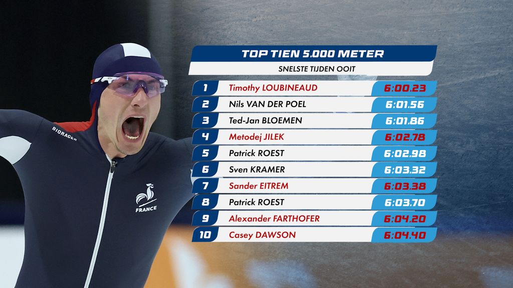 A primal scream from Timothy Loubineaud rang thru the ice rink in Salt Lake City. The Frenchman, who has never won a World Cup medal in the five kilometers, has broken the old world record of Nils van der Poel (6:01.56) with a time of 6:00.23, to everyone’s surprise.