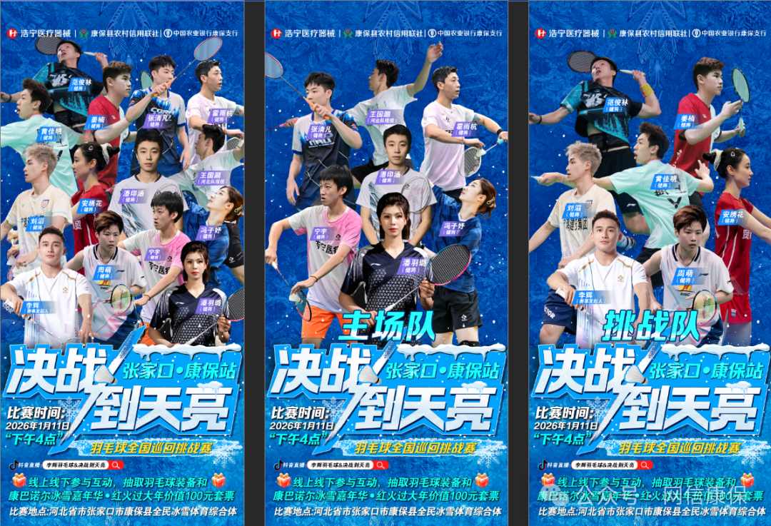 The city of ice and snow welcomes a feast of badminton, and the New Year arena gathers the stars of the sports world. As a major event in Kangbanol’s “Ice and Snow Carnival, Prosperous Chinese New Year” series of events, the Kangbao Station of the “Battle to Dawn” Badminton National Tour Challenge will officially start at 4:00 pm on January 11, 2026, at the National Ice and Snow Sports Complex in Kangbao County, Zhangjiakou City. Fan Junlin, Jiang Nan, Zhang Qingfan and other national-level athletes will compete with Wang Guohao, an active member of the Hebei team. Thirteen badminton athletes will gather in Cannes to present a peak showdown to the audience.