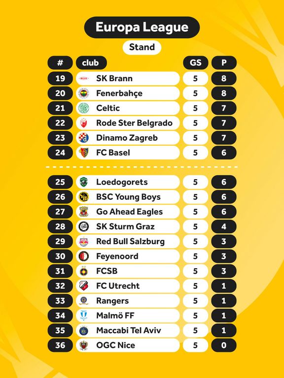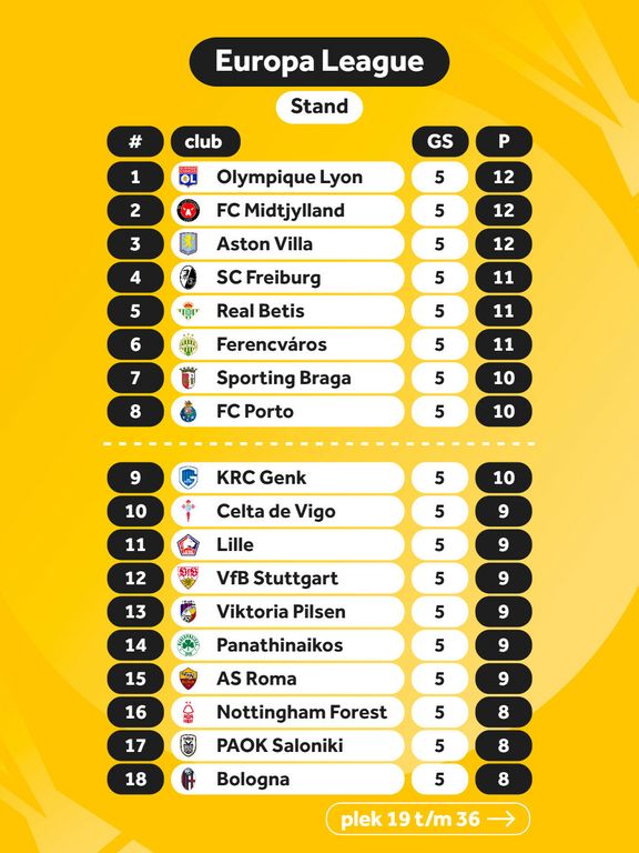 The coach did not get it completely right at the press conference the day before the meeting with the English. Olympique Lyonnais (first), SC Freiburg (fourth), Real Betis (fifth) and FC Porto (eighth) are indeed high, but SK Brann is number nineteen.