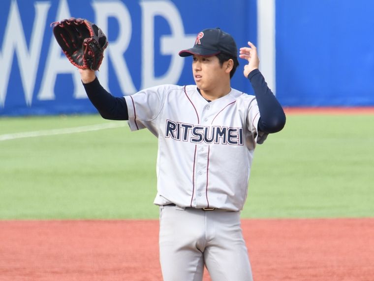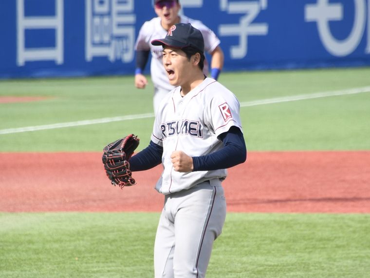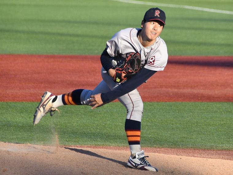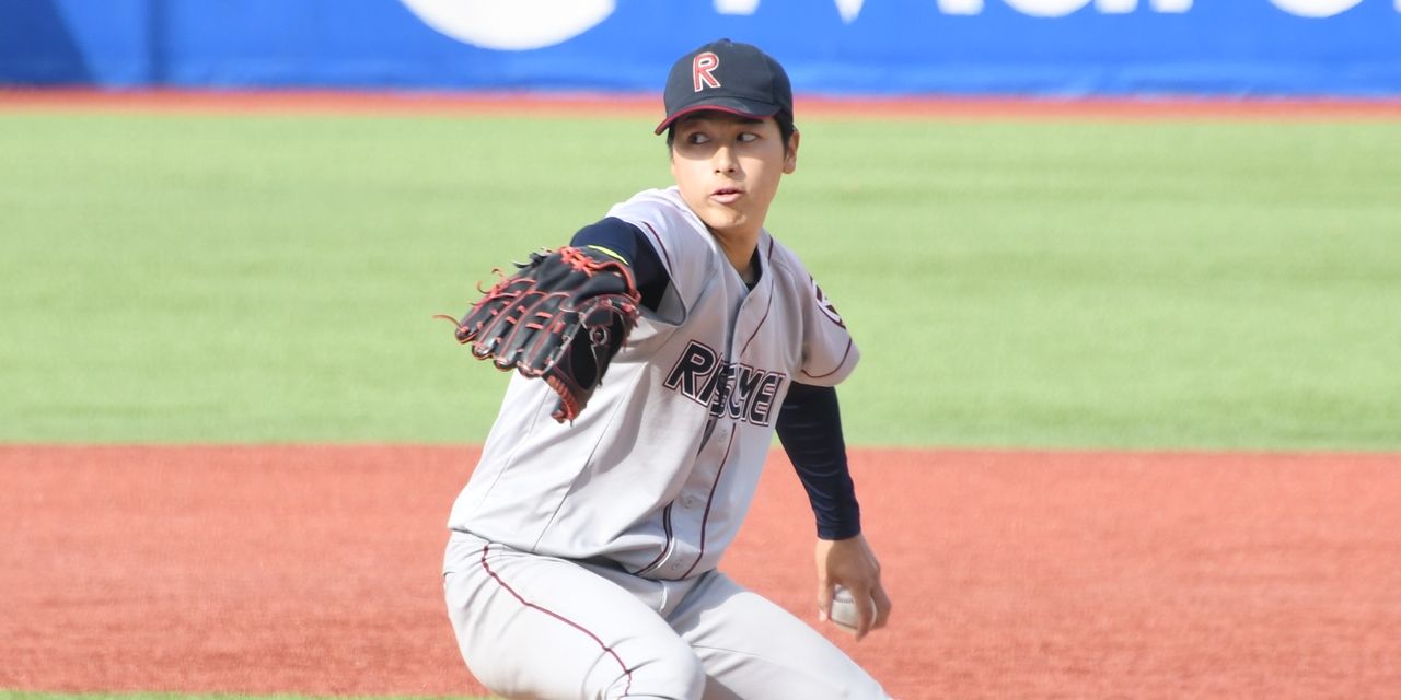 Kayaku Arima of Ritsumeikan University struck out 10 players in a row at the Jingu tournament last fall (all university games were photographed by Shota Inoue)