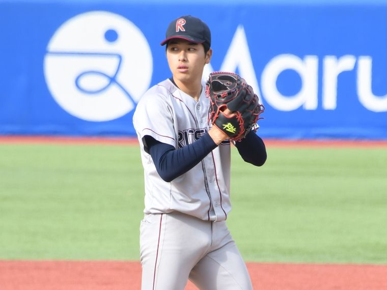 On the mound, Arima calmly waved his arms without losing his cool expression. During his high school days, he participated in Koshien in the summer of his third year and advanced to the top eight. He started all four games up to the quarterfinals. At Ritsumeikan University, he gained experience by pitching in the Kansai Student League from the spring of his first year, but it was in the fall of his second year that he won his first victory. “I’ve been pitching with the intention of gaining experience rather than winning. I think being able to experience the level of college baseball early on has been a plus for me.”