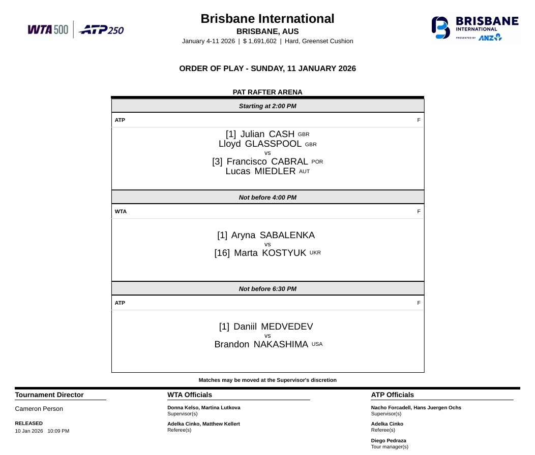 No earlier than 14:00Sabalenka vs Kostyuk